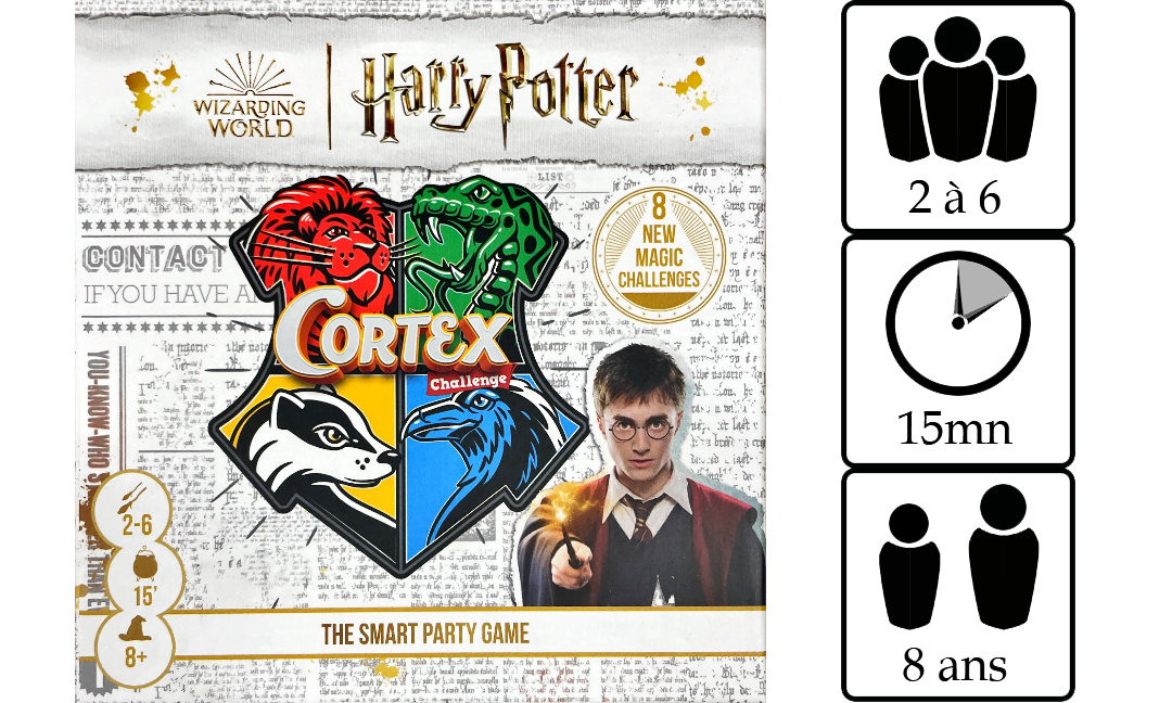 Cortex Challenge Harry Potter est un défi pour le cerveau, la mémoire et la réactivité. Vous vous affrontez dans huit types d’épreuves différentes qui mettent à l’épreuve toutes les fonctions cérébrales : Défi tactile, Duel de sorciers, Patronus unique, Chasse au trésor et bien plus encore.