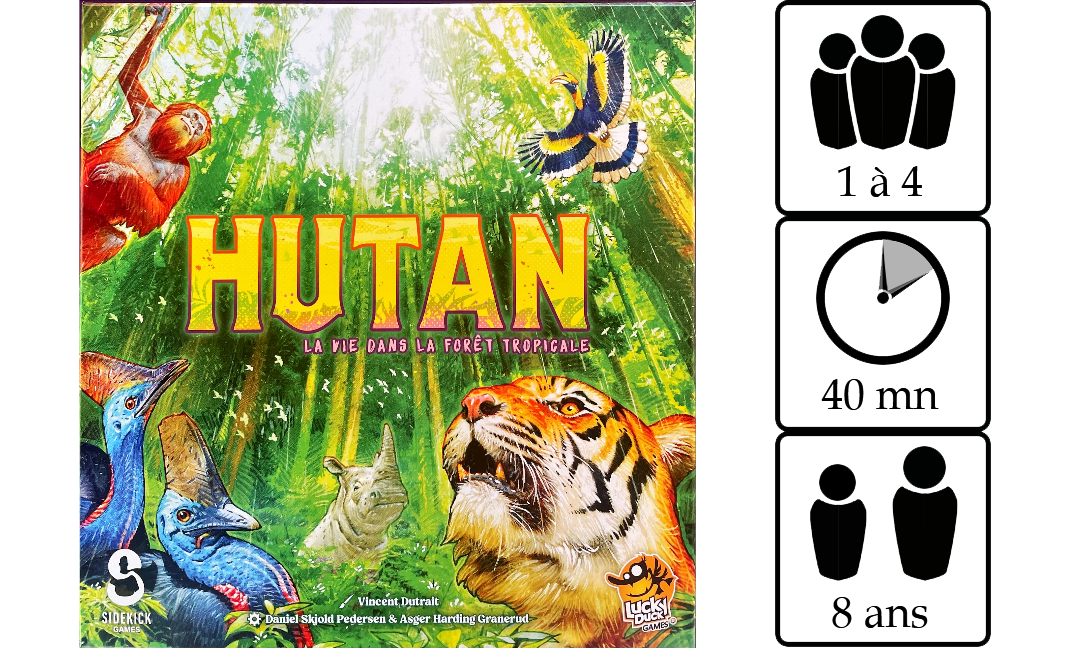 Hutan est un mot de la langue indonésienne qui veut dire forêt. C’est ainsi que ce jeu vous embarque dans un monde d’émerveillement et de splendeur naturelle avec des règles simples et du matériel qui favorise l’immersion.