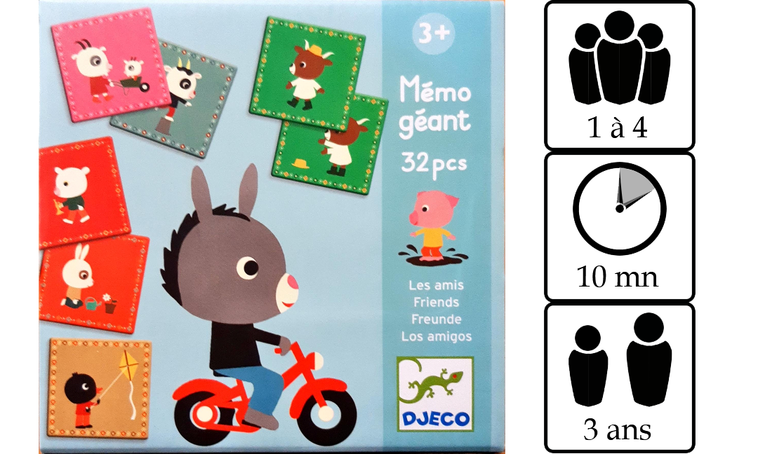 Un jeu Mémo géant de 32 pièces en carton pour faire travailler sa mémoire.