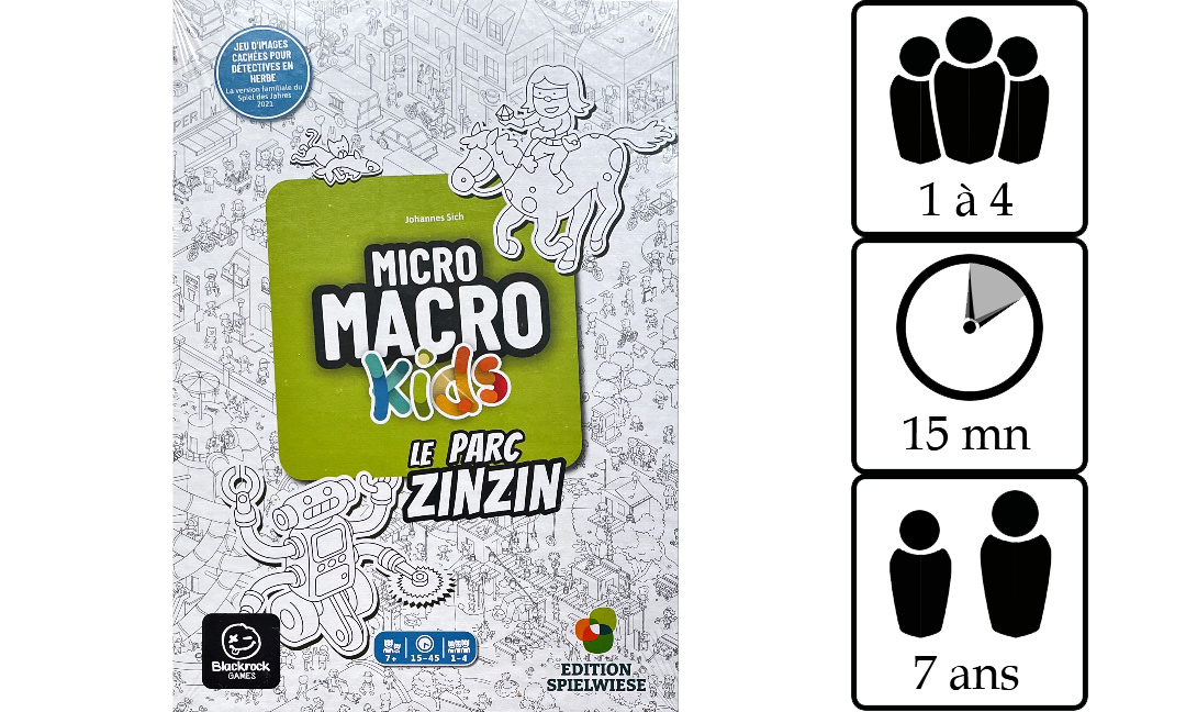 Micro Macro Kids – Le Parc Zinzin est un jeu d’observation et de déduction accessible dès 7 ans. Dans cette version adaptée aux plus jeunes, retrouvez l’esprit du célèbre jeu d’enquête et d’observation Micro Macro avec des intrigues imaginées pour les juniors à l’oeil affuté. Explorez la ville au cours de 22 enquêtes inédites et non violentes !